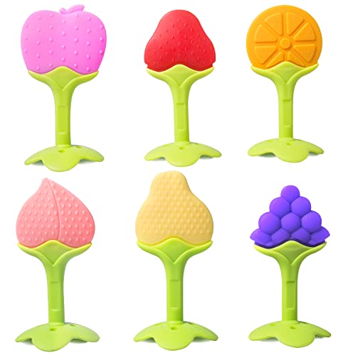 6 Pack Baby Teething Toys for Newborn Infant, BPA Free Freezer Safe Silicone Fruit Baby Teethers Soothe Babies Gums Set for Babies 0-6 Months 6-12 Months