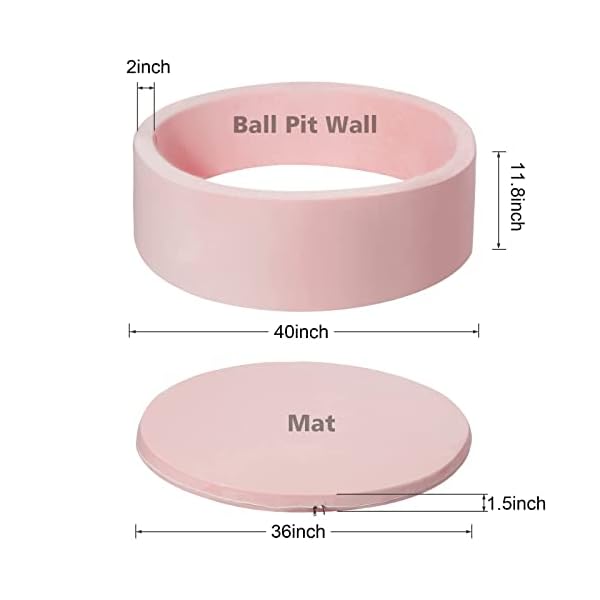🔘 Bigger, Thicker & Safer:Aurako ball pit is larger with its wall’s diameter about 40inch and its mat’s diameter about 36inch. The ball pool is thicker with its wall’s thickness about 2 inch and its mat’s thickness about 1.5inch. The height of the ball pit wall is about 11.8 inch, which is safer for a baby to play in it.