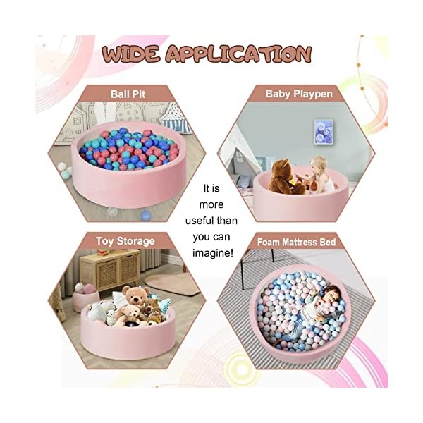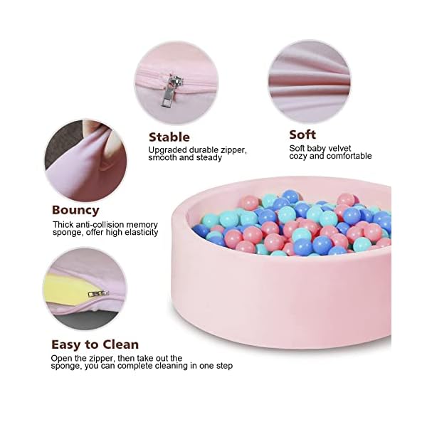 🔘Soft & Durable: Made of soft velvet, Aurako ball pit feels cozy and comfortable. The inner material of Aurako ball pit is thick anti-collision memory sponge with good buffer function, which is environmentally friendly, soft, bouncy and durable (not contain any harmful substances), not easy deform, ideal for babies and children.