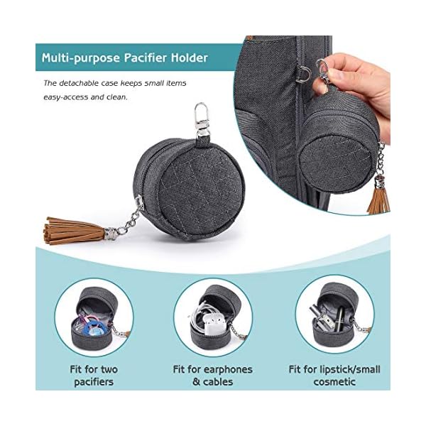 On-the-Go Convenience – Extra-wide opening and easy-glide dual zippers allow for quick, one-handed accessibility. Built-in stroller straps effortlessly attach your baby diaper bag to any stroller. And a portable changing pad holds everything moms & dads need to keep baby clean, dry and happy, as well as a detachable pacifier holder with multipurpose for organizing baby pacifiers or other necessities.