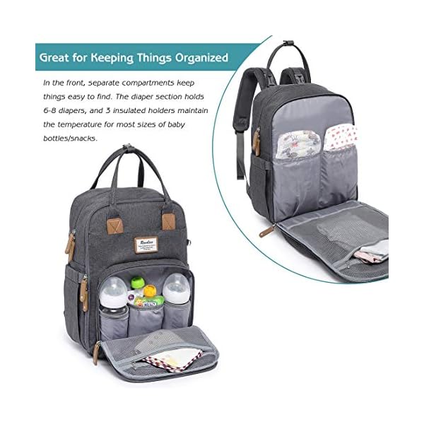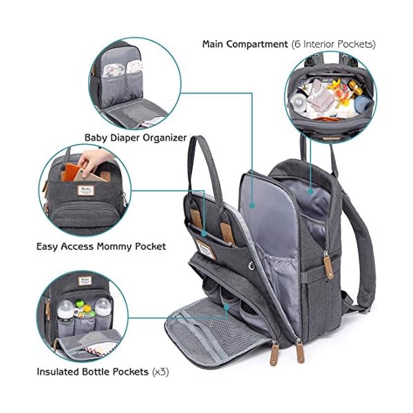 Accessible & Thoughtful Structure – The interior of our diaper bag backpack includes a padded laptop pocket, mesh organizers and a myriad of well-designed pockets. Maintain the temperature of your baby bottles/snack in the insulated pockets, easy access your keys and wallet in the parent pocket, quickly grab a diaper out of the mesh diaper organizer, and anti-theft back pocket for storing your valuables.