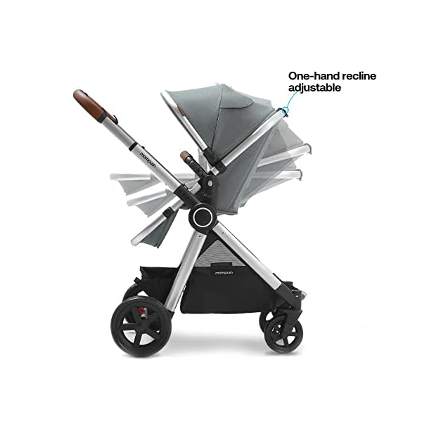 ERGONOMIC SEAT: Includes bassinet and full size forward-facing reversible toddler seat allows your child to face you or the world; One-hand recline adjustment lets you quickly lay the seat back with the squeeze of a button, adjustable footrest provides extra support for childs feet; Telescoping handlebar extends for parents of varying heights and features premium, full-grain leather for extra grip while pushing baby.
