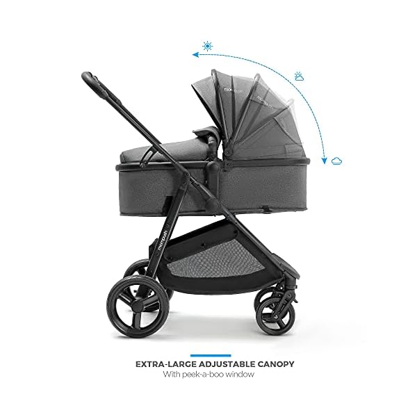 Mompush Wiz, Baby Stroller with True Bassinet Mode for Newborn and Toddler, Convertible Carriage Bassinet to Stroller, Reversible Seat, Foot Cover and Rain Cover Included, Large Storage Space