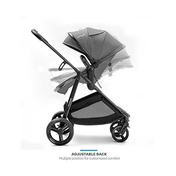 2-in-1 seat unit, just a few seconds is all it takes to transform from infant bassinet into toddler stroller. The carriage mode with full recline gives infants a comfy ride from birth.