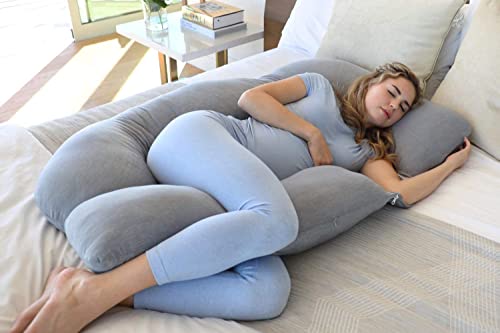 PharMeDoc Pregnancy Pillow, U-Shape Cooling Cover – Dark Grey with Detachable Side – Support for Back, Hips, Legs, Belly for Pregnant Women