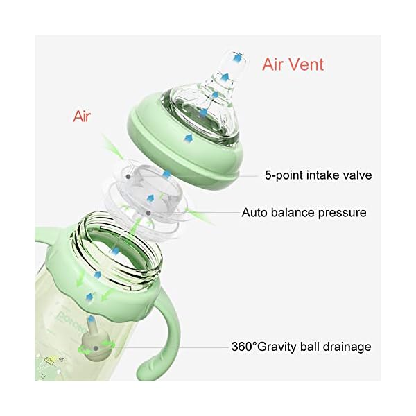 👪 3. UNIQUE DESIGN – The ergonomic design makes this bottle comfortable for both parents and babies to hold, which brings a good mood to mothers and babies. And the rotating handle is perfect to protect the child’s wrist and can help baby control drinking.