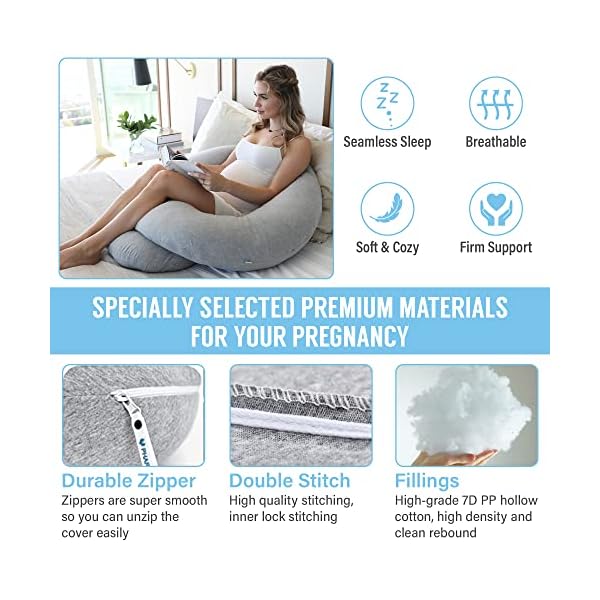 THE ULTIMATE PREGNANCY PILLOW – C-shaped body pillow design replaces need for multiple bed pillows, helping support your back, hips, knees, neck and head.